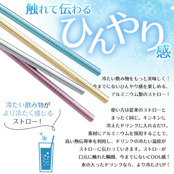アルミ製 ストロー 4本セット ひんやりストロー 繰り返し使える 脱プラ エコグッツ 金属製 ストロー マドラー 4本入り ◇ ひんやりアルミストローセット